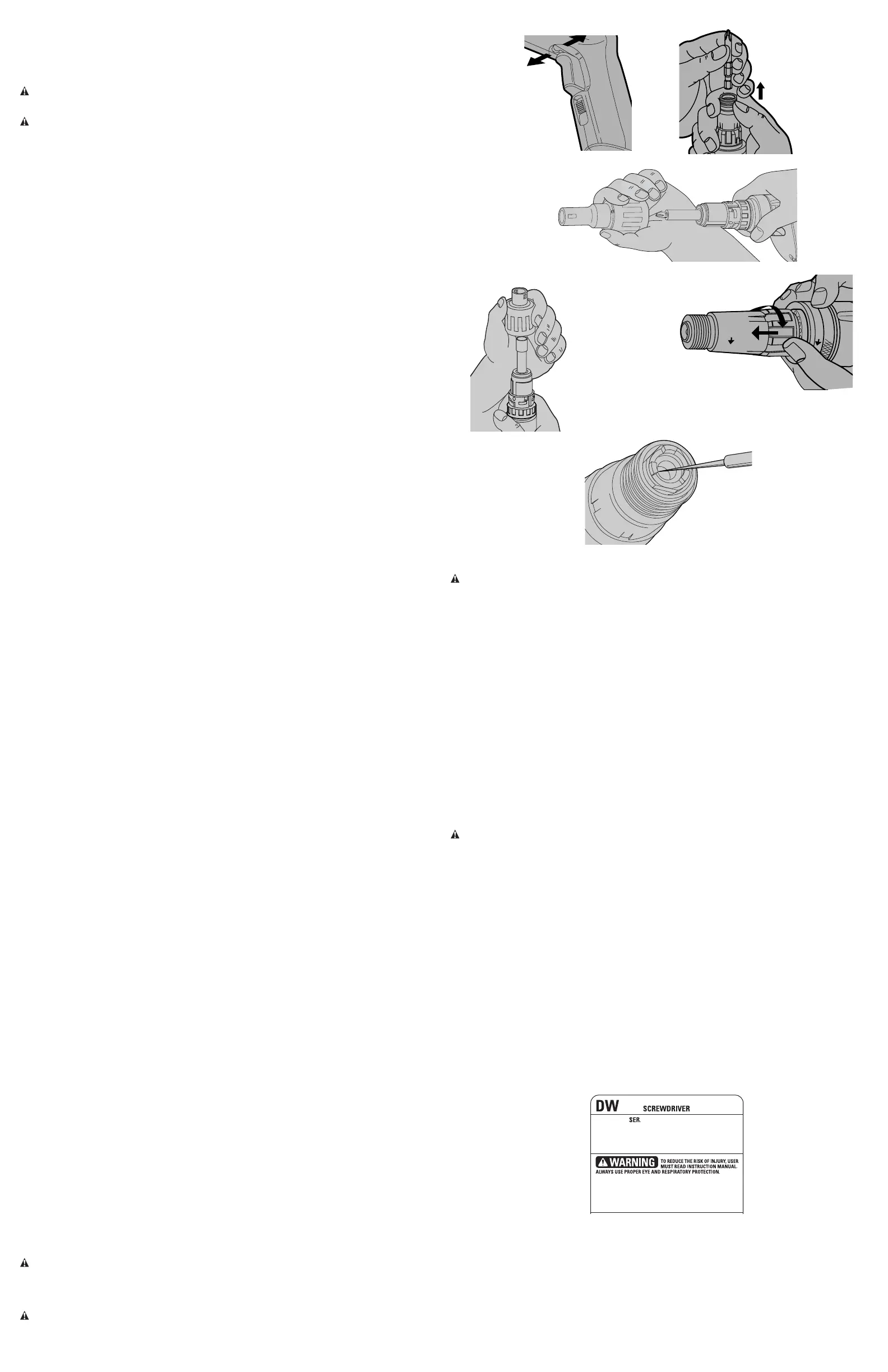 part of the tool into a liquid. Drywall Screwdrivers: Depth locator and adjustment collar should be