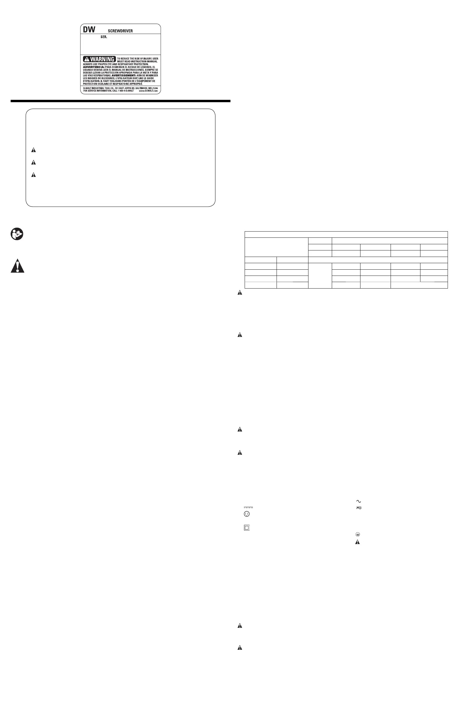 AVERTISSEMENT : afin de réduire le risque de blessures, lire le mode d’emploi de l’outil.