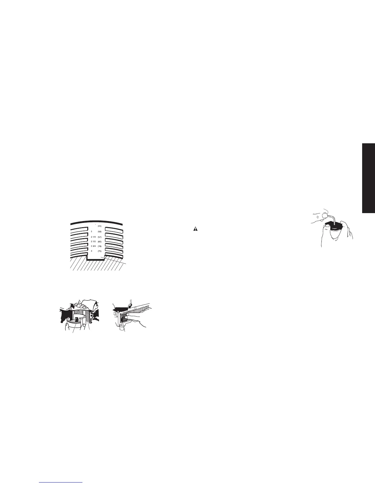 c. Inside the canister bracket (J) are settings in inches and