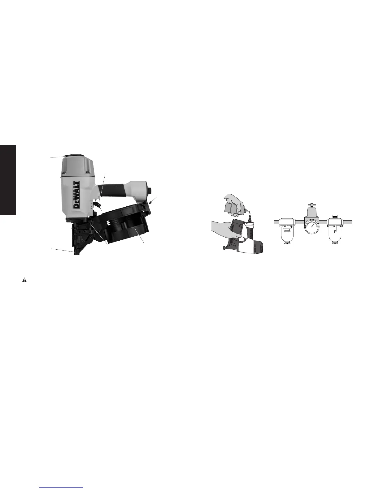 a. Use DeWALT pneumatic tool oil or a non-detergent S.A.E. 20
