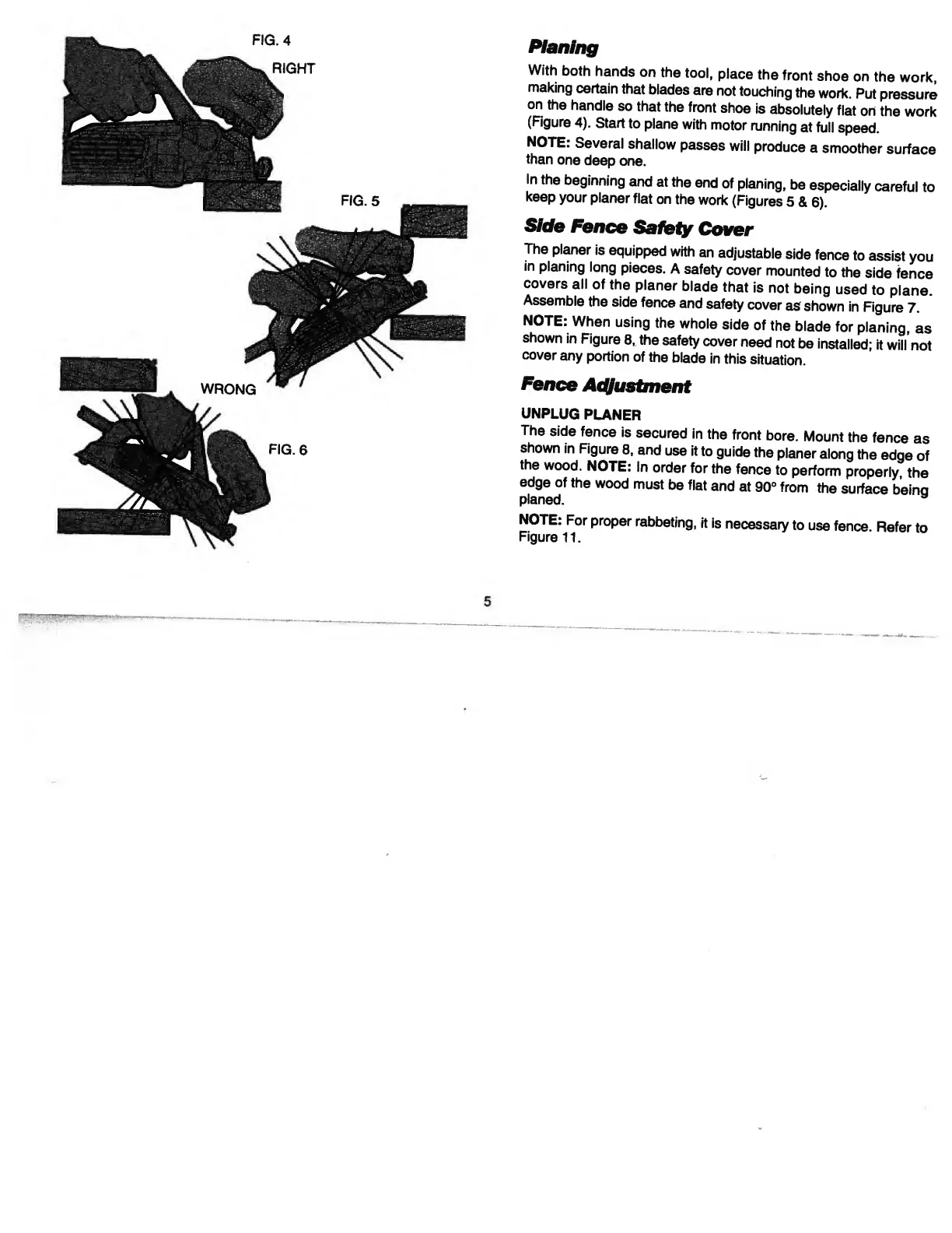 DeWalt DW675 - Planing; Side Fence Safety Cover; Fence Adjustment