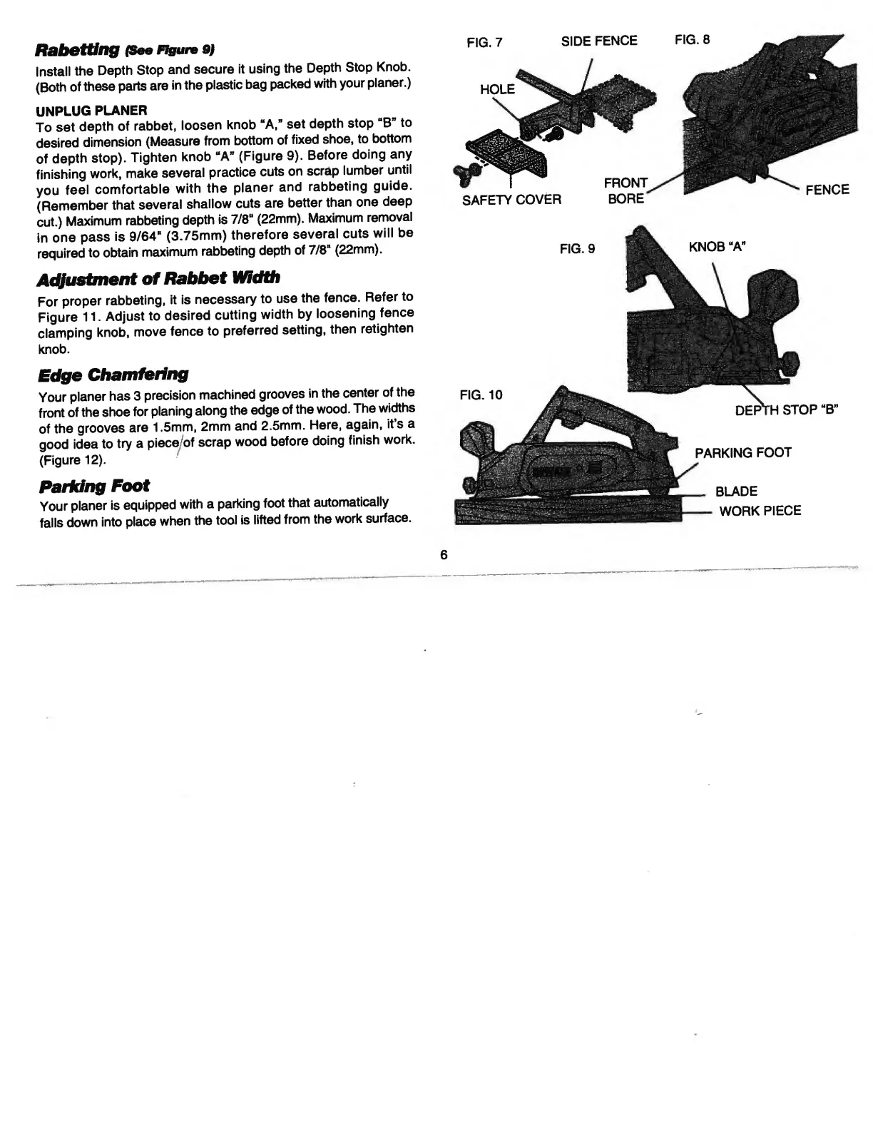 DeWalt DW675 - Rabetting; Adjustment of Rabbet Width; Edge Chamfering; Parking Foot