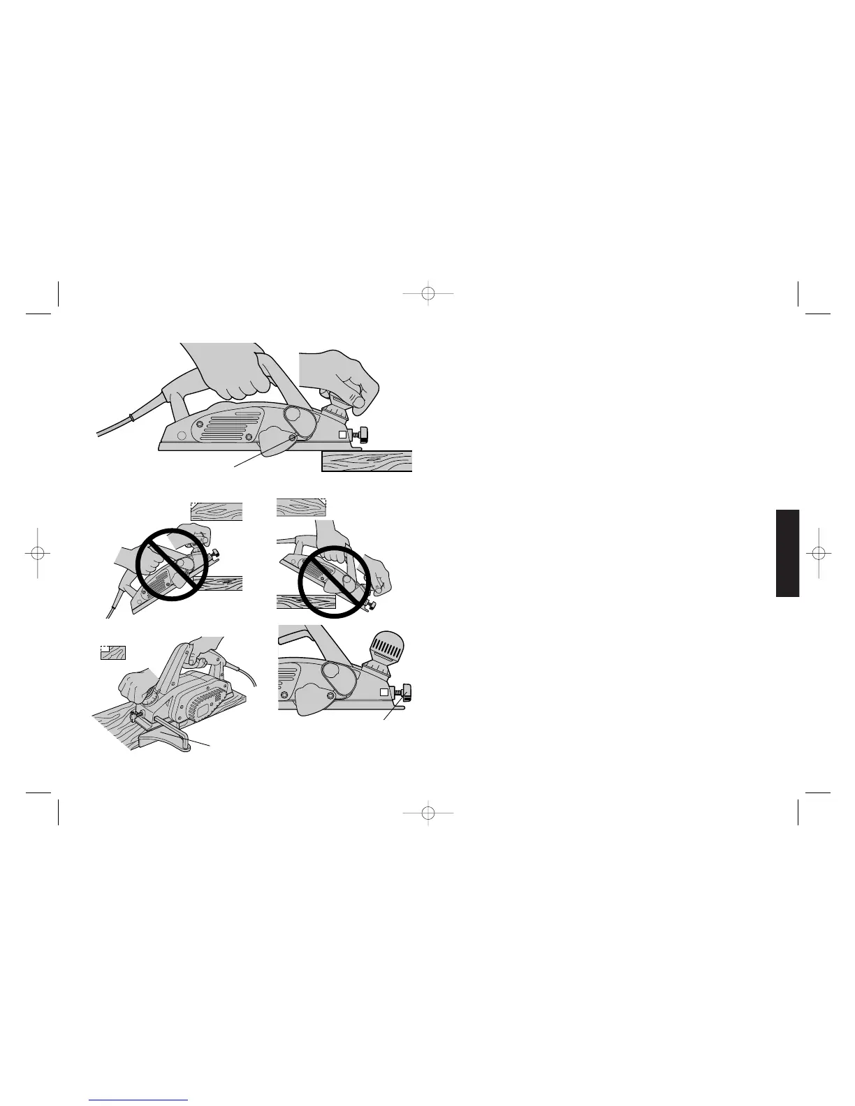 Déposer le patin avant contre la surface à raboter, en s'assurant
