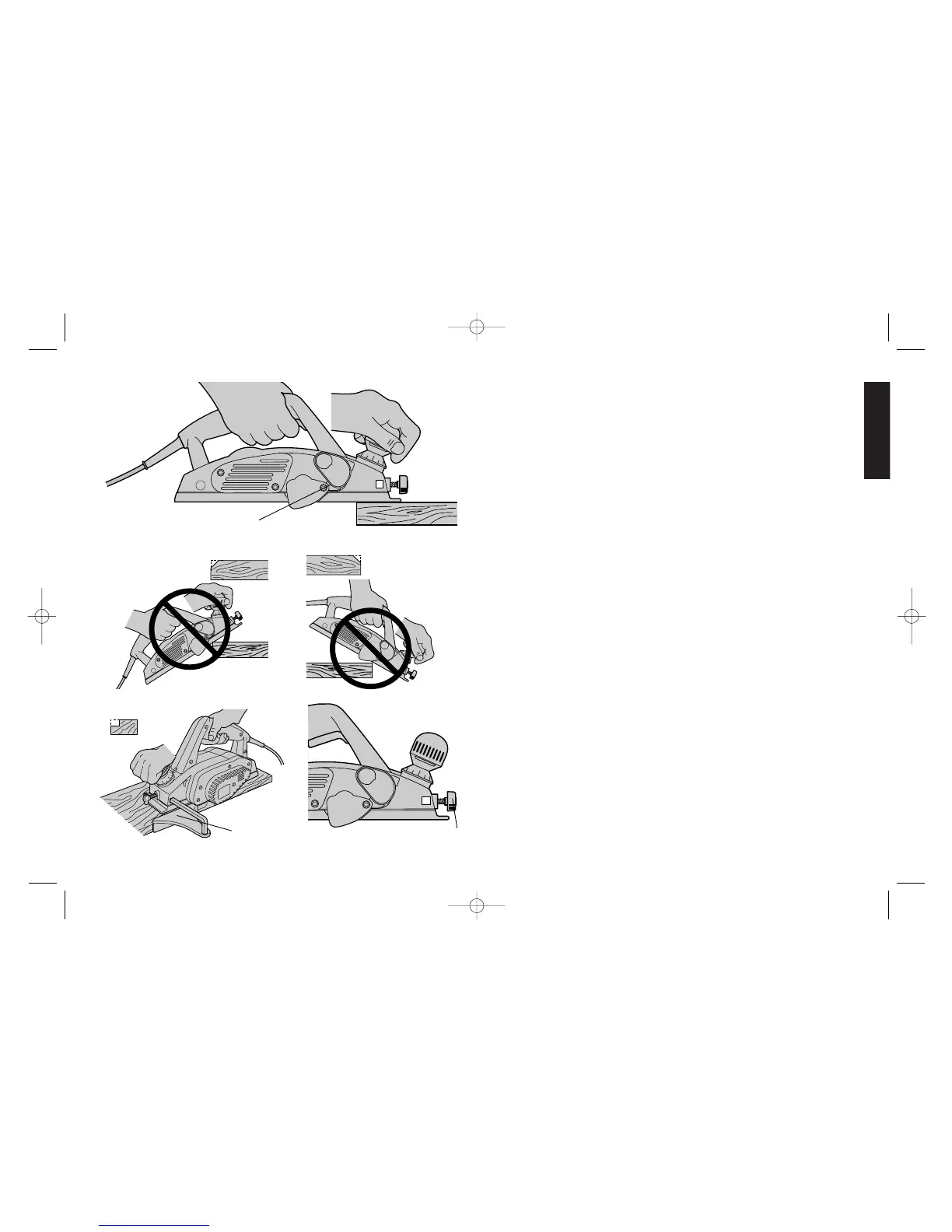 Hold the planer as shown in Figure 4 with one hand on the switch