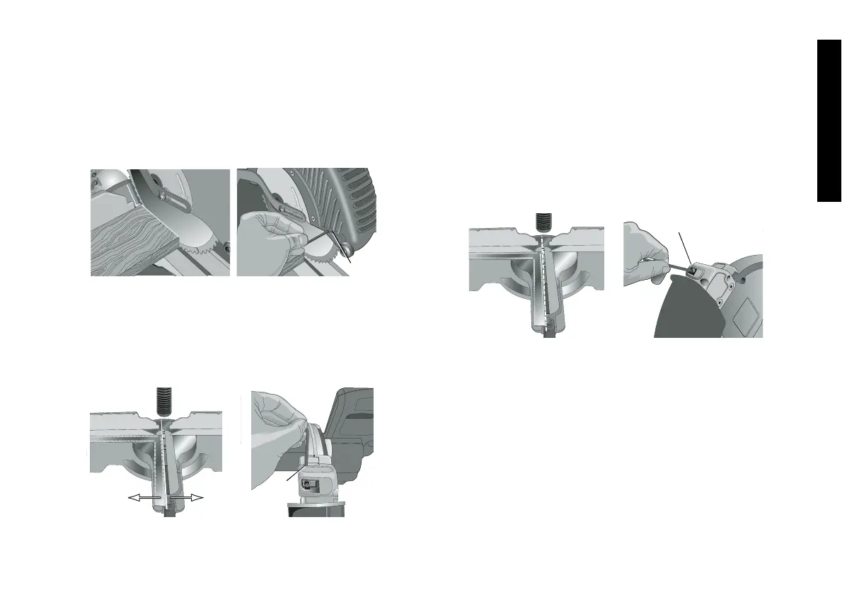 miter saw guard if necessary, adjust side screw (G) to align