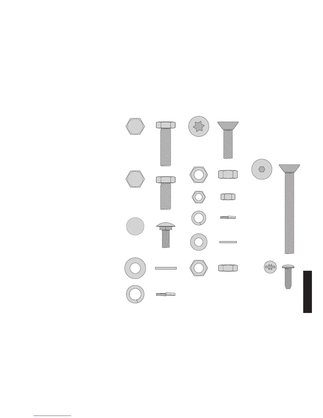 tuercas, pernos y arandelas con la gráfica de herrajes.