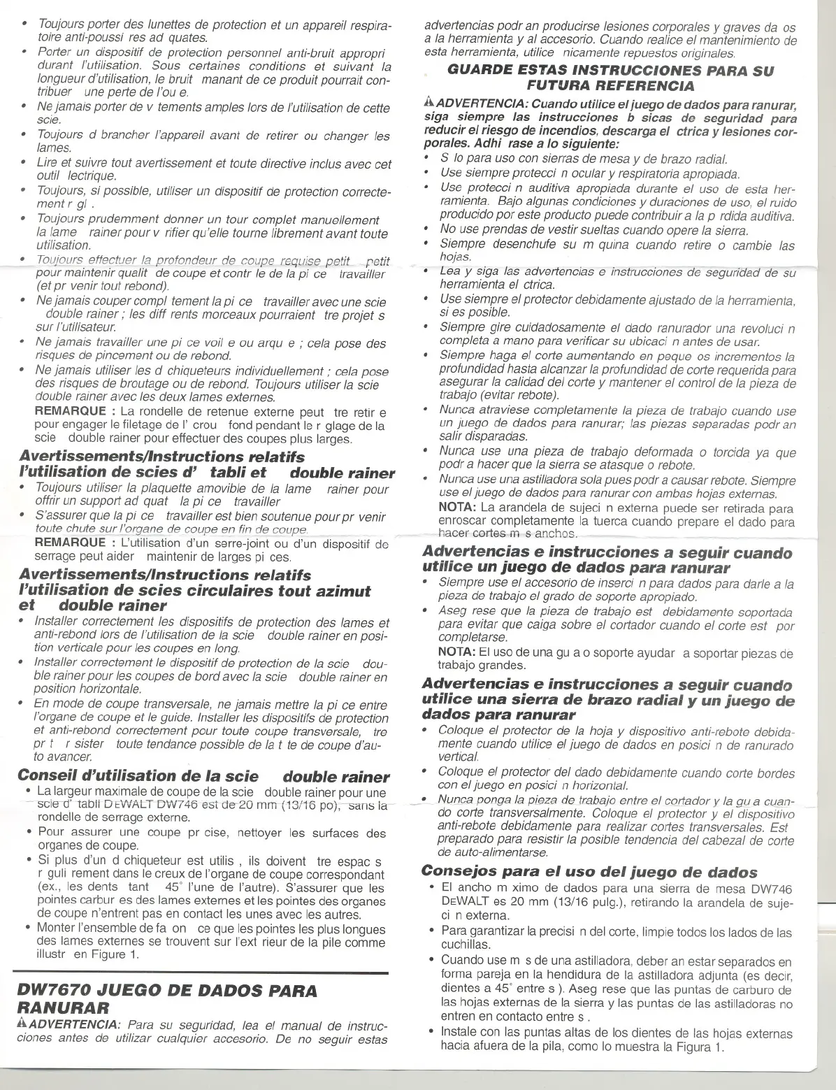 0 Installer correctementIe dispositif de protection de la scie dou-