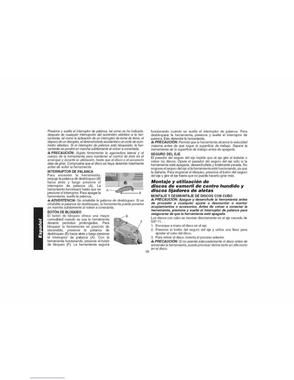 engrane el seguro del eje si la herramienta est_ funcionando, ya que