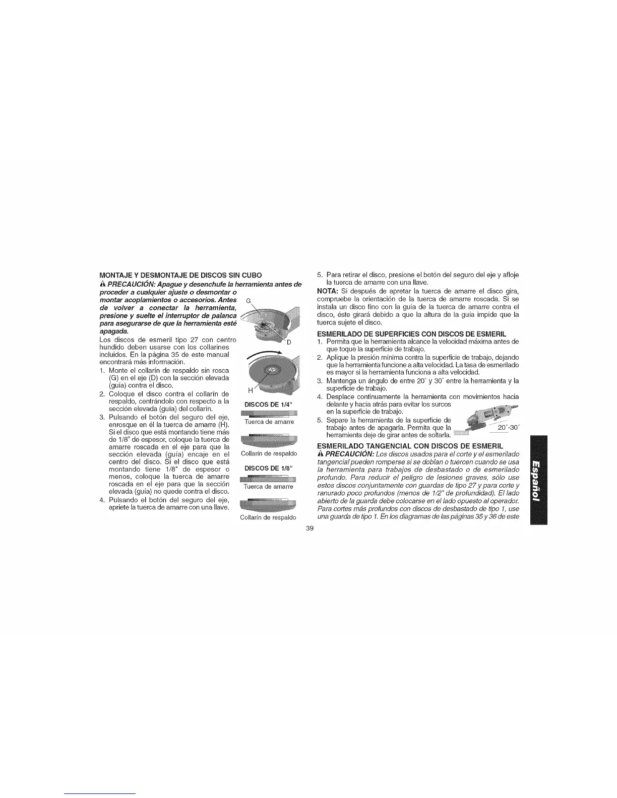 _ PRECA UCION: Los discos usados para el corte y el esmerilado