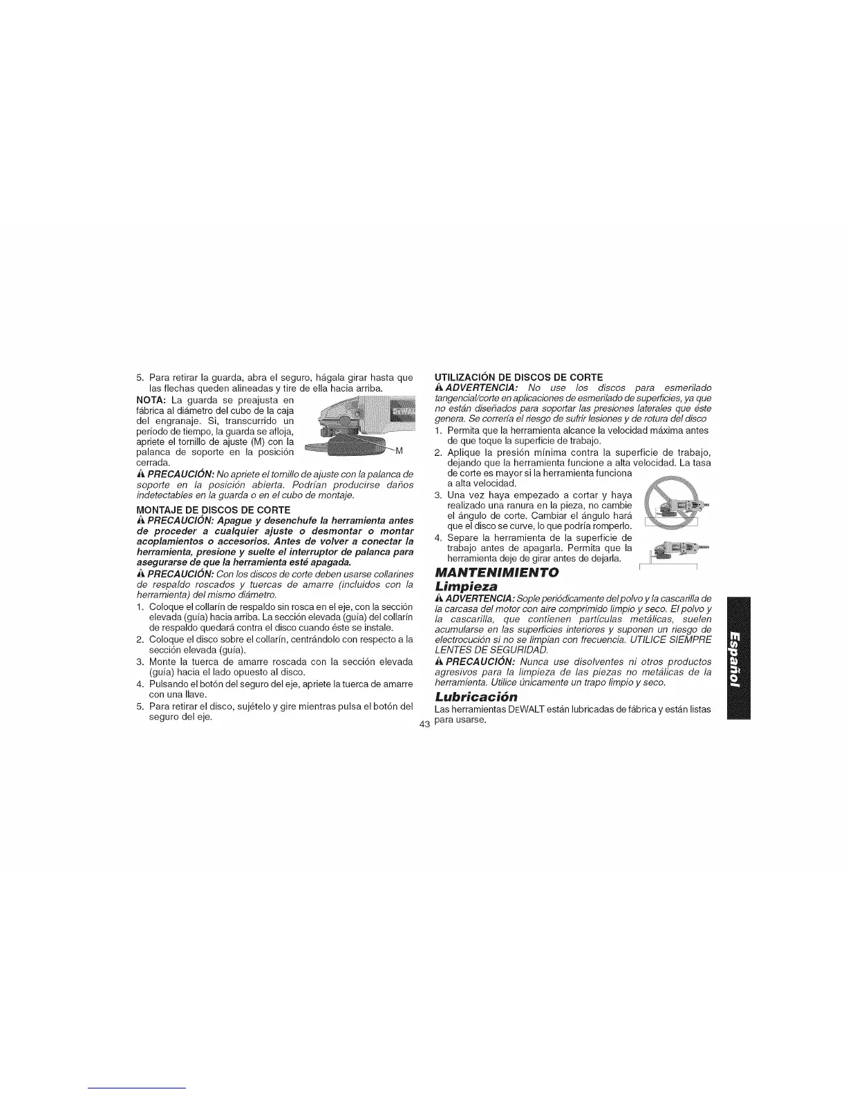 A PRECAUCION: Con los discos de corte deben usarse collarines