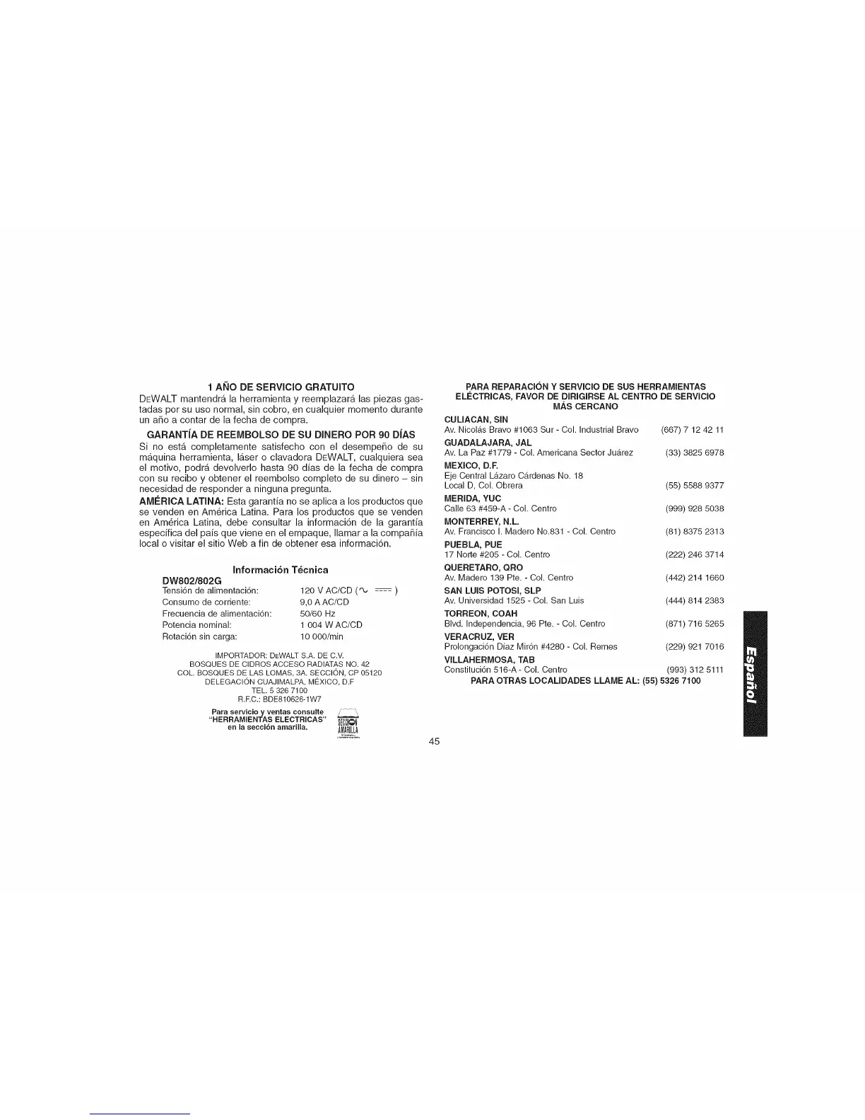 IMPORTADOR: DEWALT S.A. DE C.V.