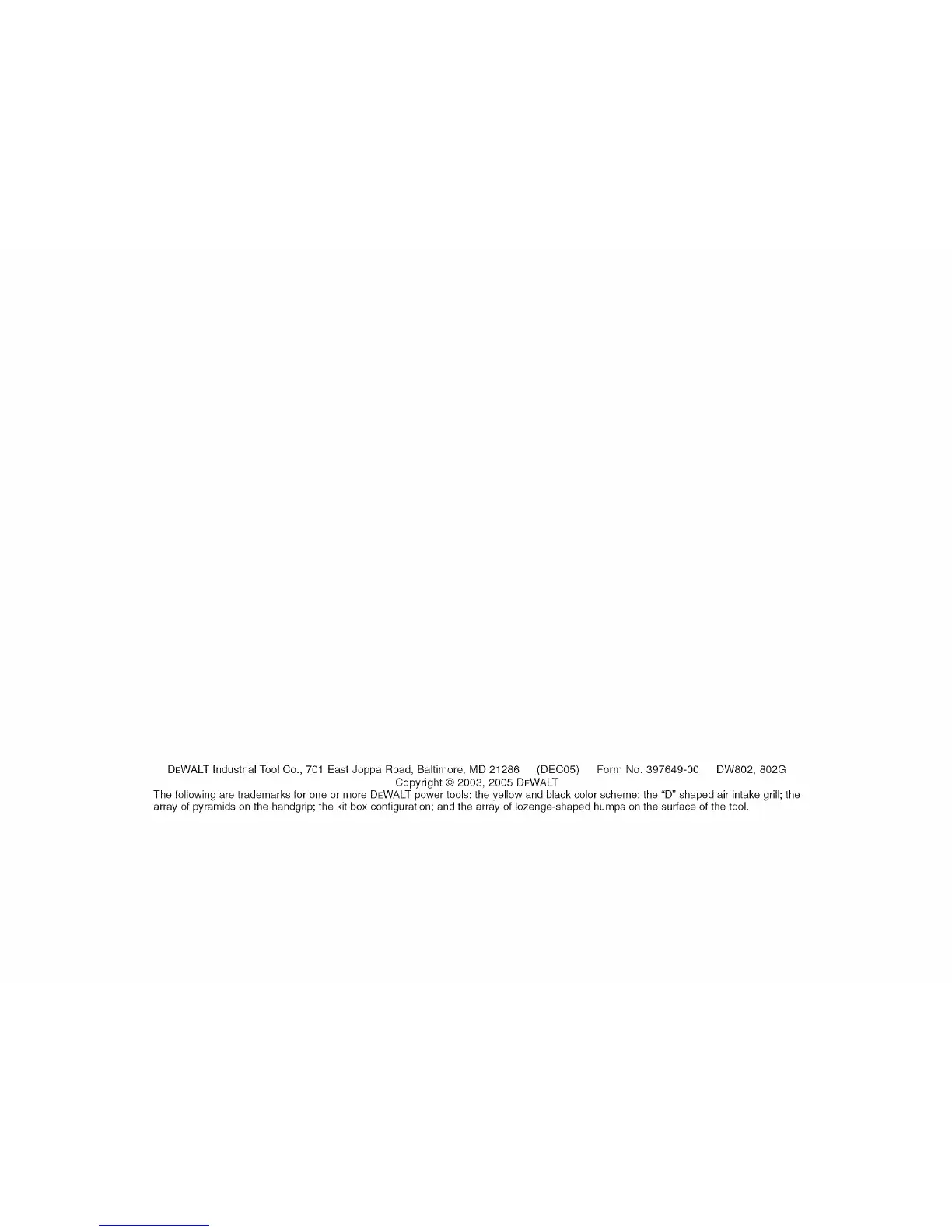 DEWALTIndustrialToolCo.,701EastJoppaRoad,Baltimore,MD21286 (DEC05) FormNo.397649-00DW802,802G