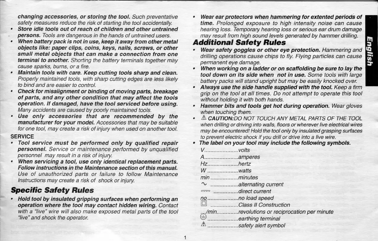 DeWalt DW988 - Specific and Additional Safety Rules; Service and Maintenance; Specific Safety Precautions; Additional Safety Precautions