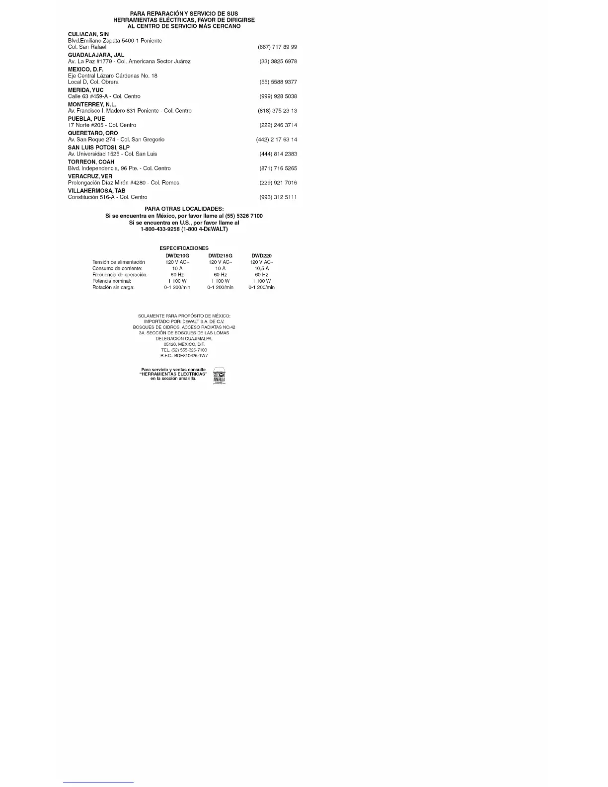 IMPORTADO POR: DEWALT S.A. DE C.V.
