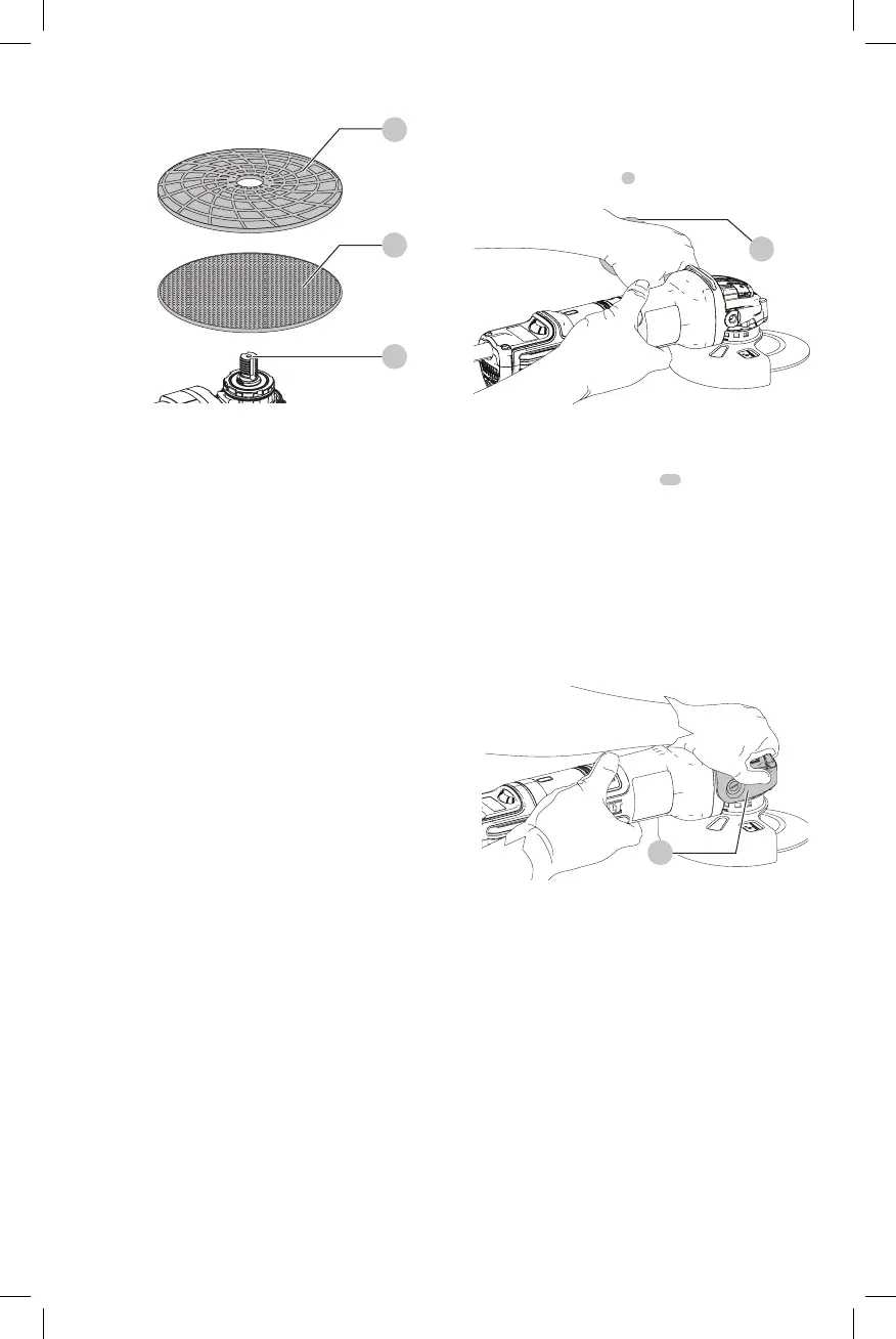 • Instale el protector y el disco o muela apropiada. No