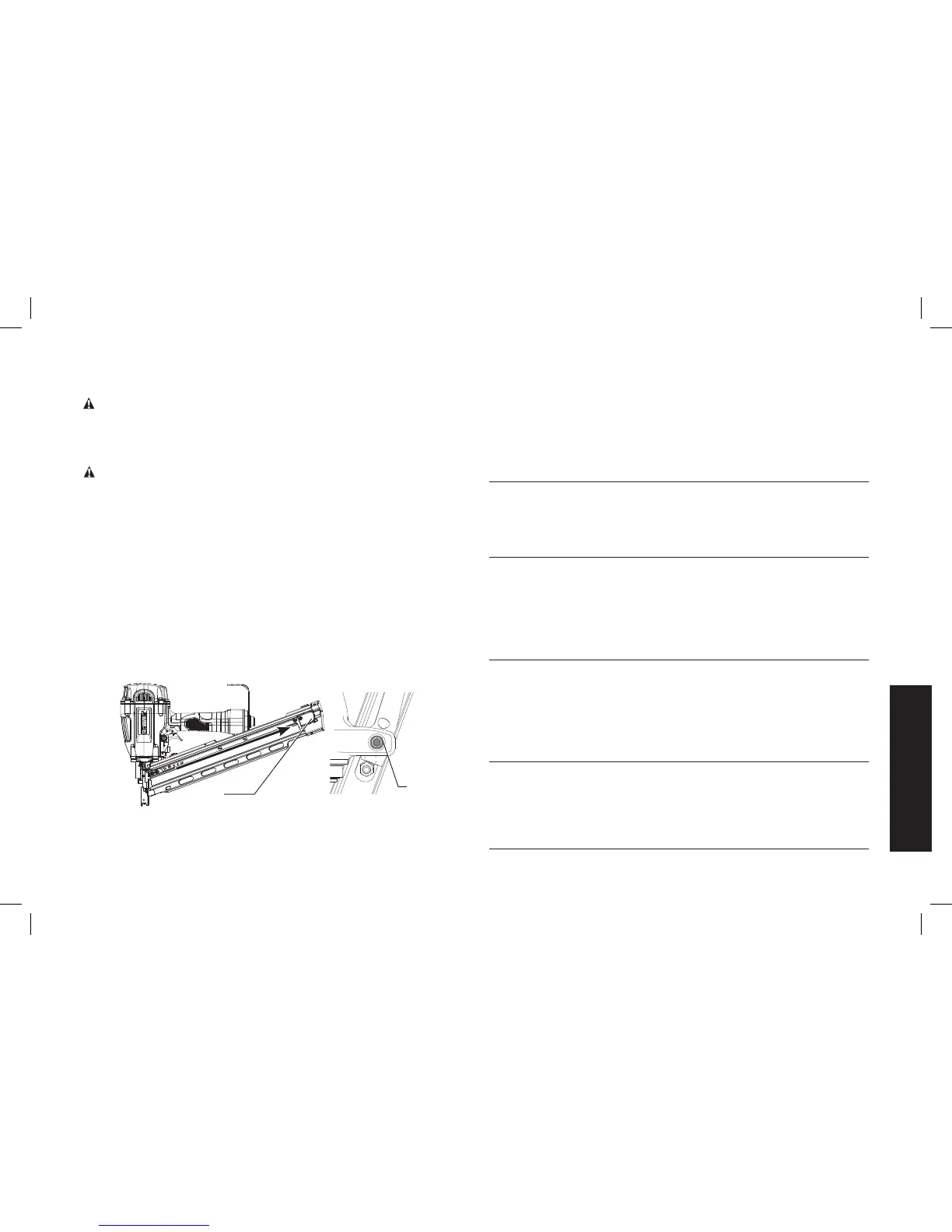 4. Si se atasca un clavo entre el impulsor y la tobera, fuerce la hoja