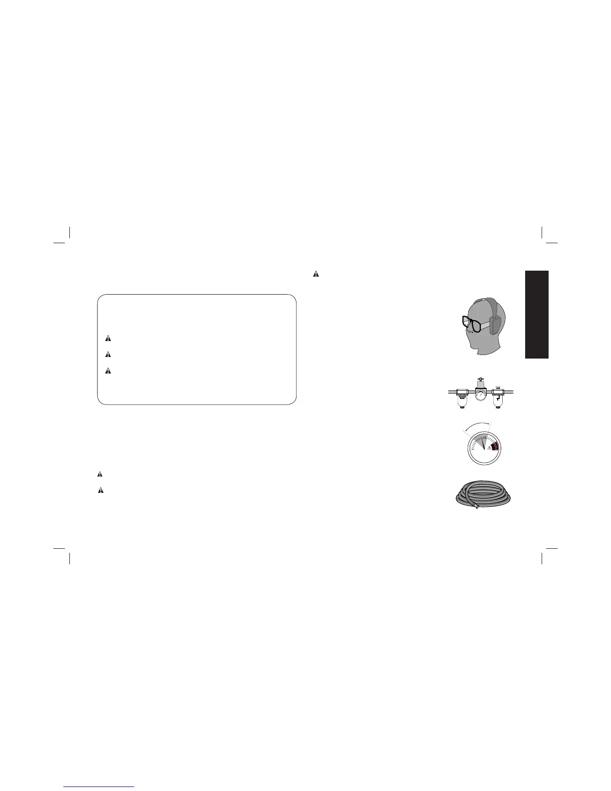 • Use only clean, dry, regulated air.