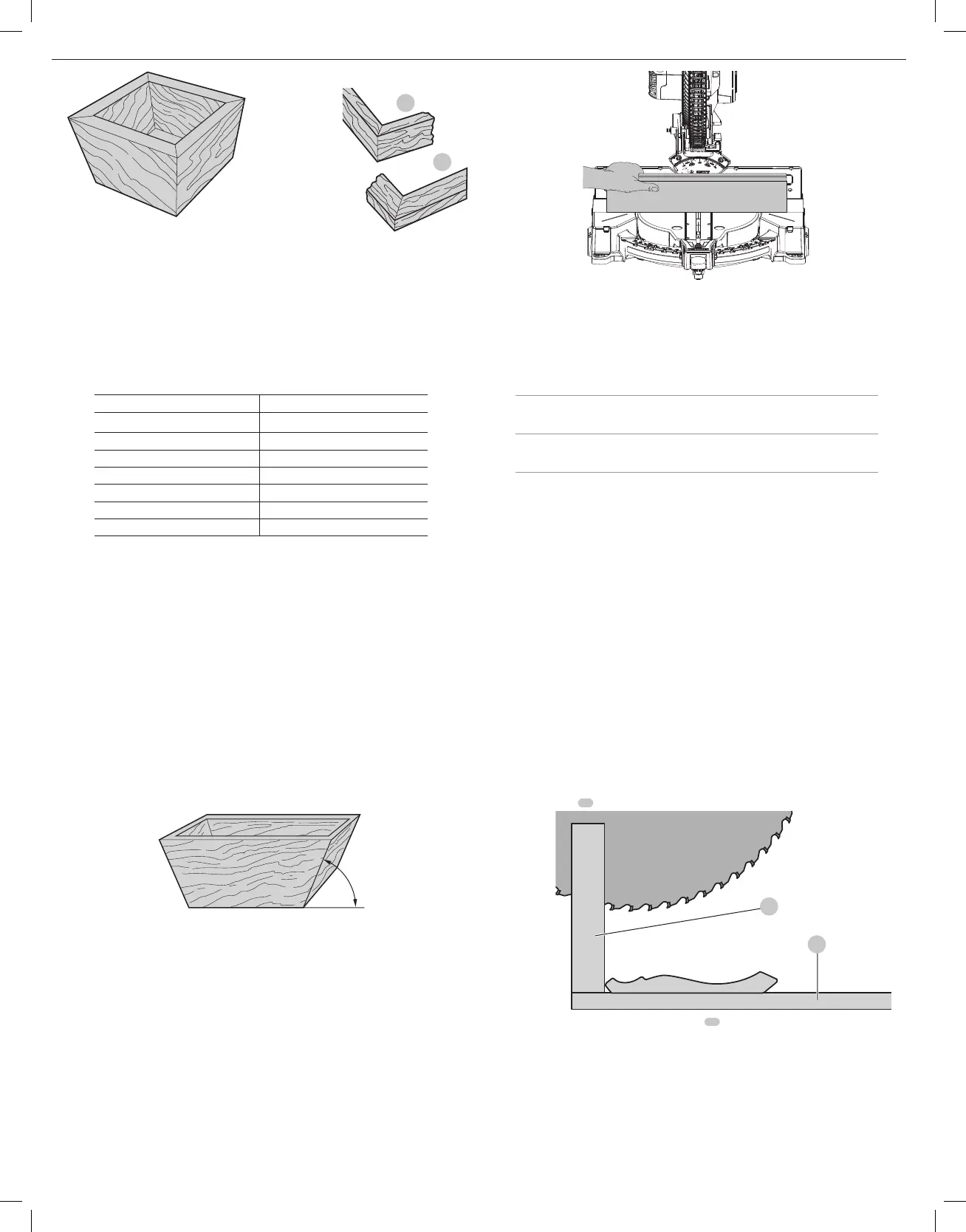 Fije la sierra en los ángulos indicados y efectúe algunos cortes de prueba. Practique empalmando
