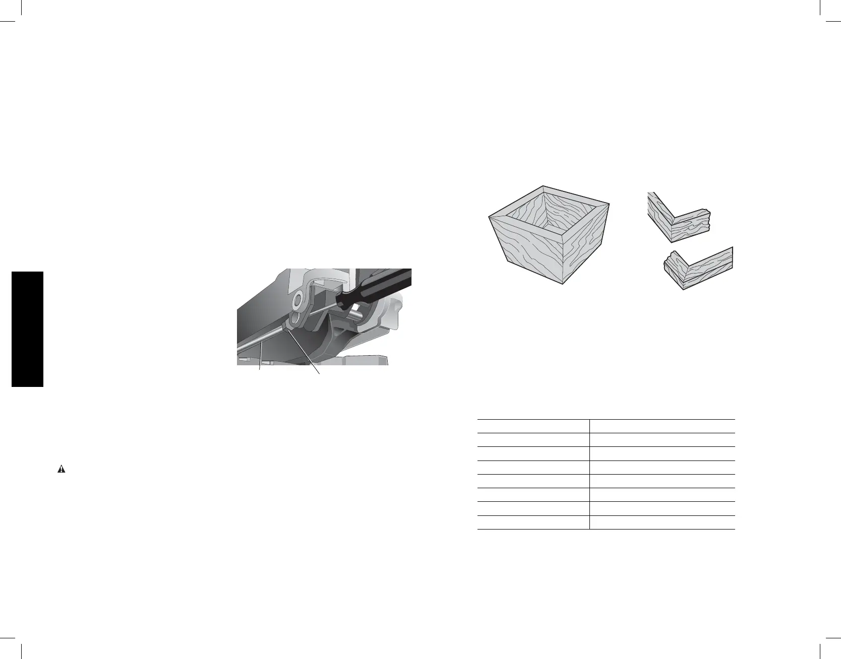 d’assemblage, réglez le biseau sur zéro et le bras d’onglet sur 45°. Le morceau de bois était