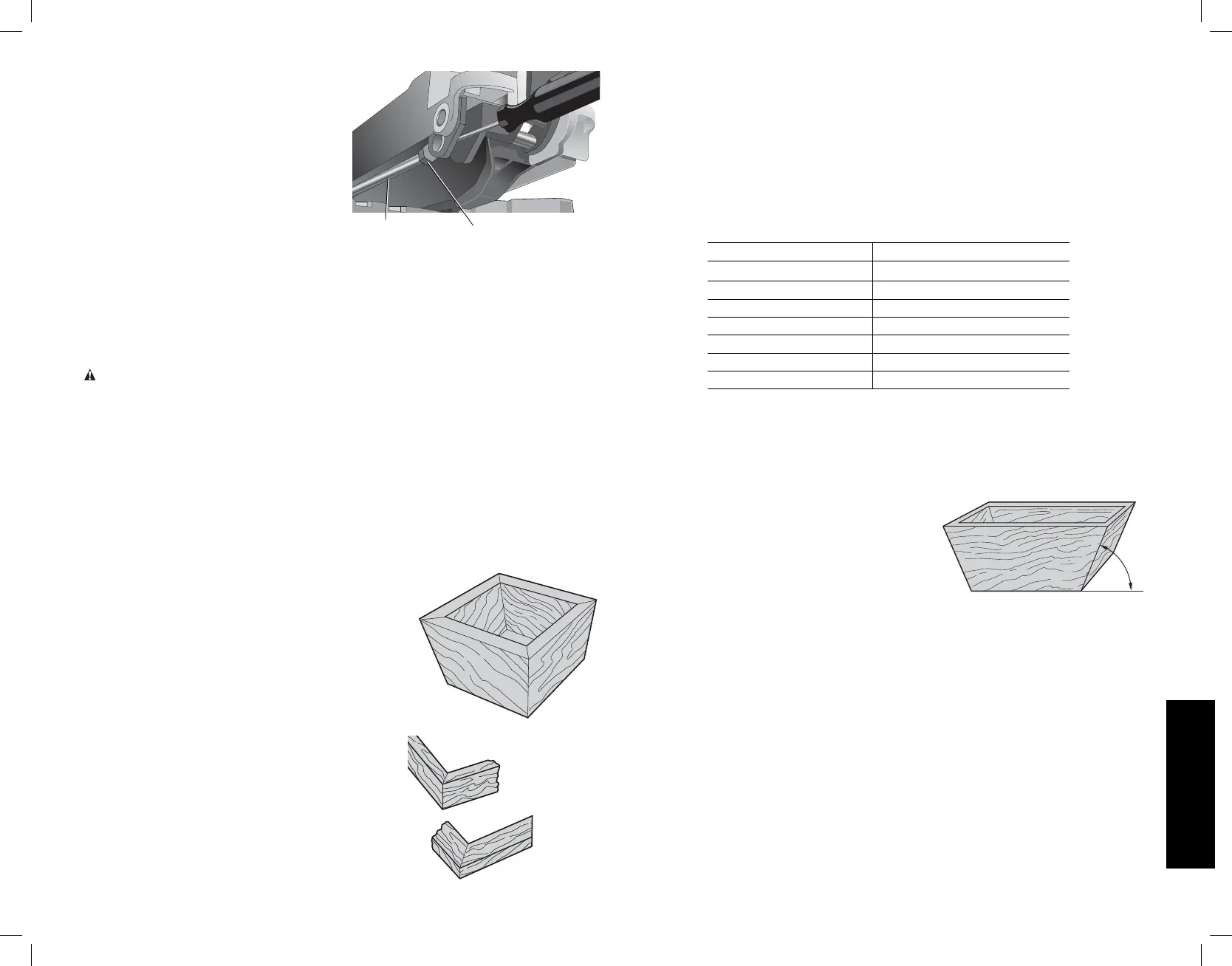 Fije la sierra en los ángulos indicados y efectúe algunos cortes de prueba. Practique