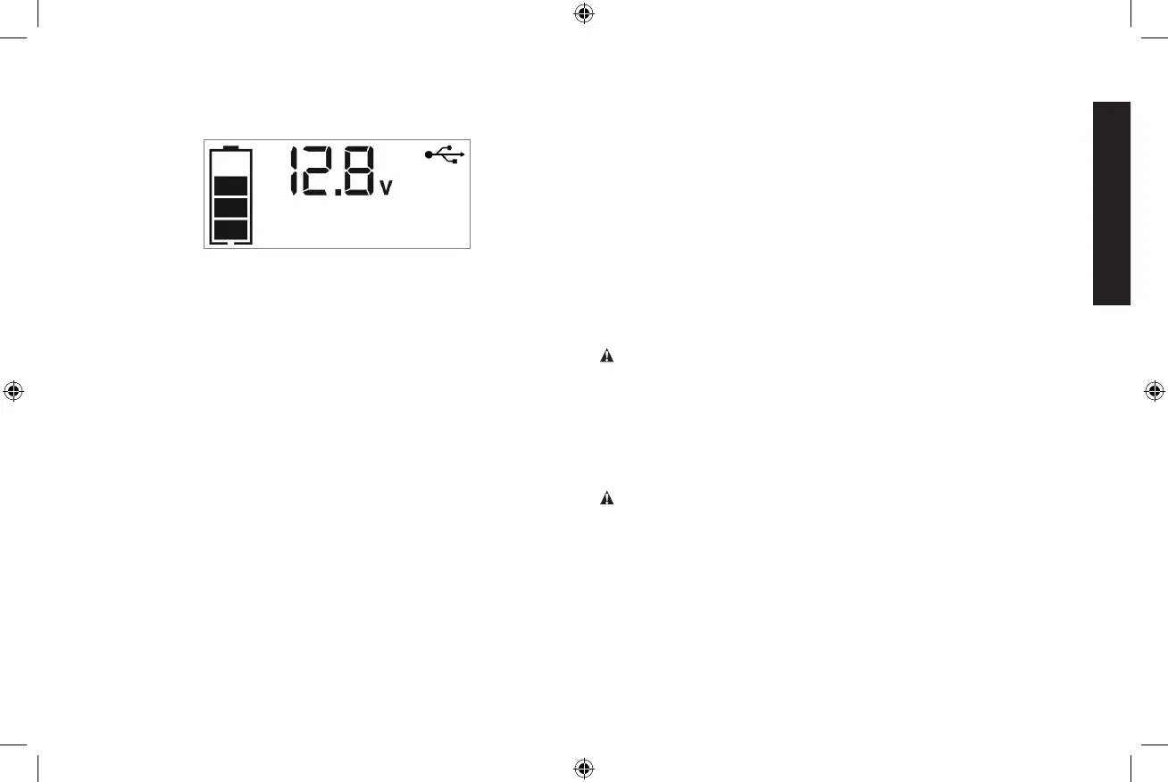 The Battery Status Icon and Battery Voltage Indicator will light