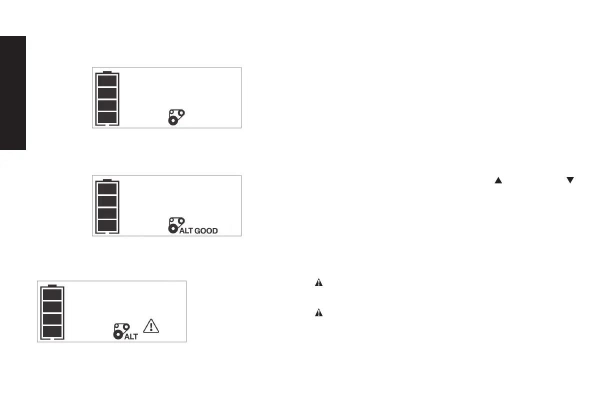 The Battery Status Icon, Alternator Icon and “ALT” will light solid.
