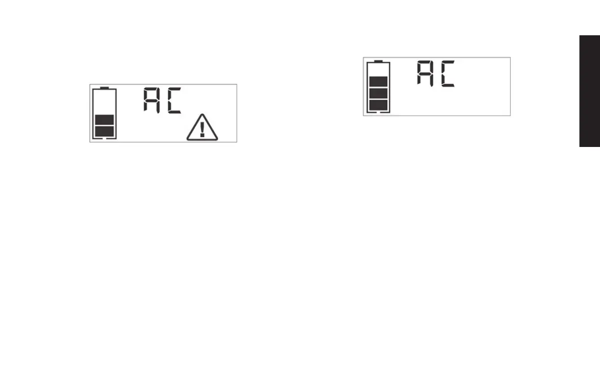 The Battery Status Icon will light solid; the “AC” on the Digital