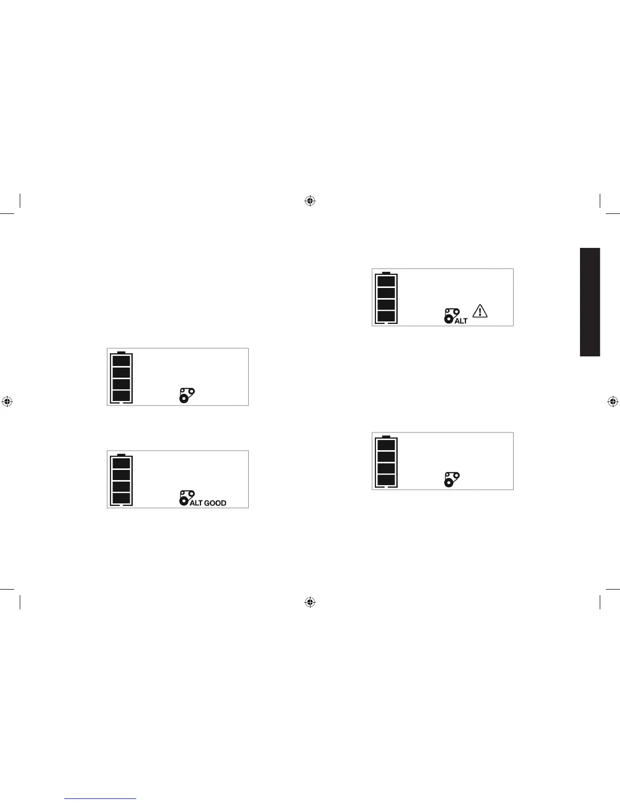 The Battery Status Icon, Alternator Icon and “ALT” will light solid.