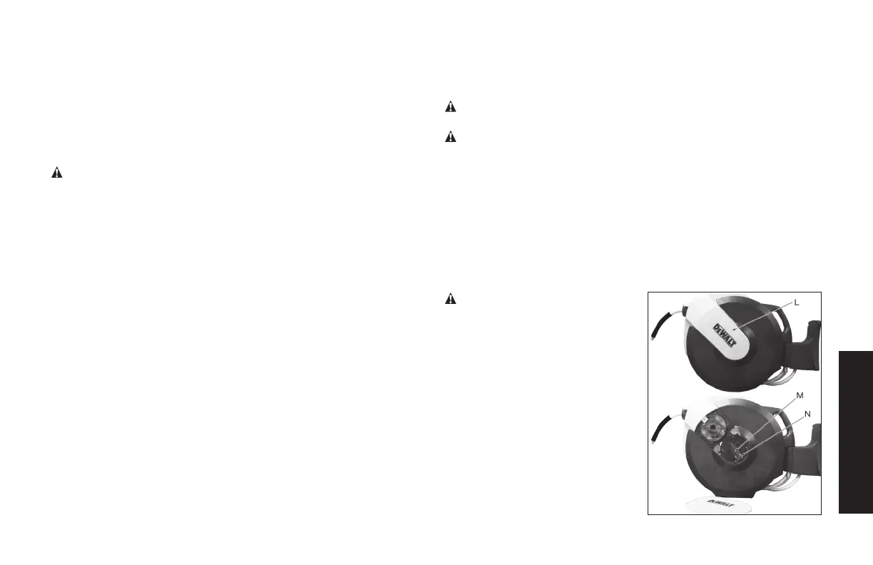 Revise el funcionamiento del carrete jalando lentamente la manguera