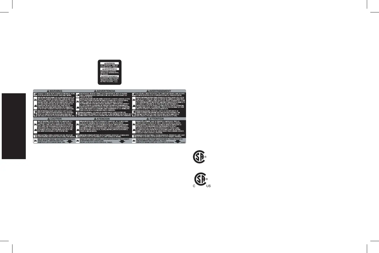 apposée sur le côté du réservoir d’air des appareils qui sont con-
