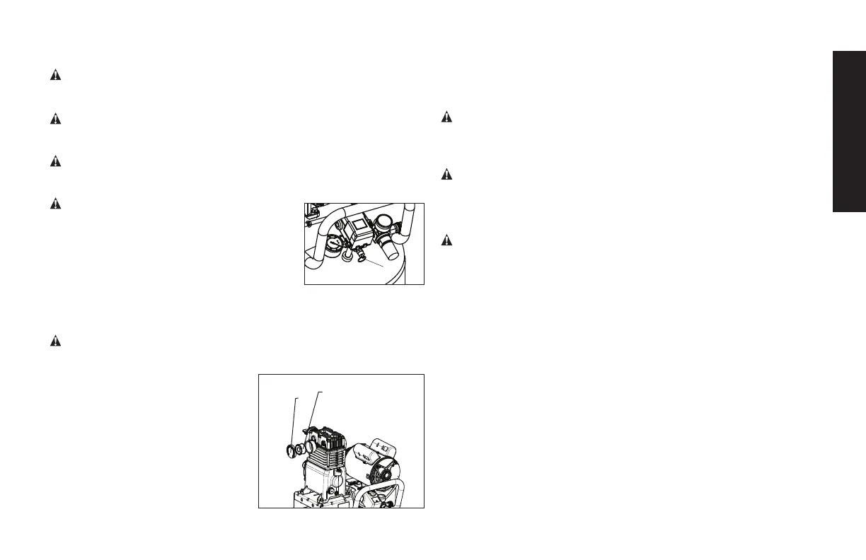 5. Drain water from air tank by opening drain valve on bottom of