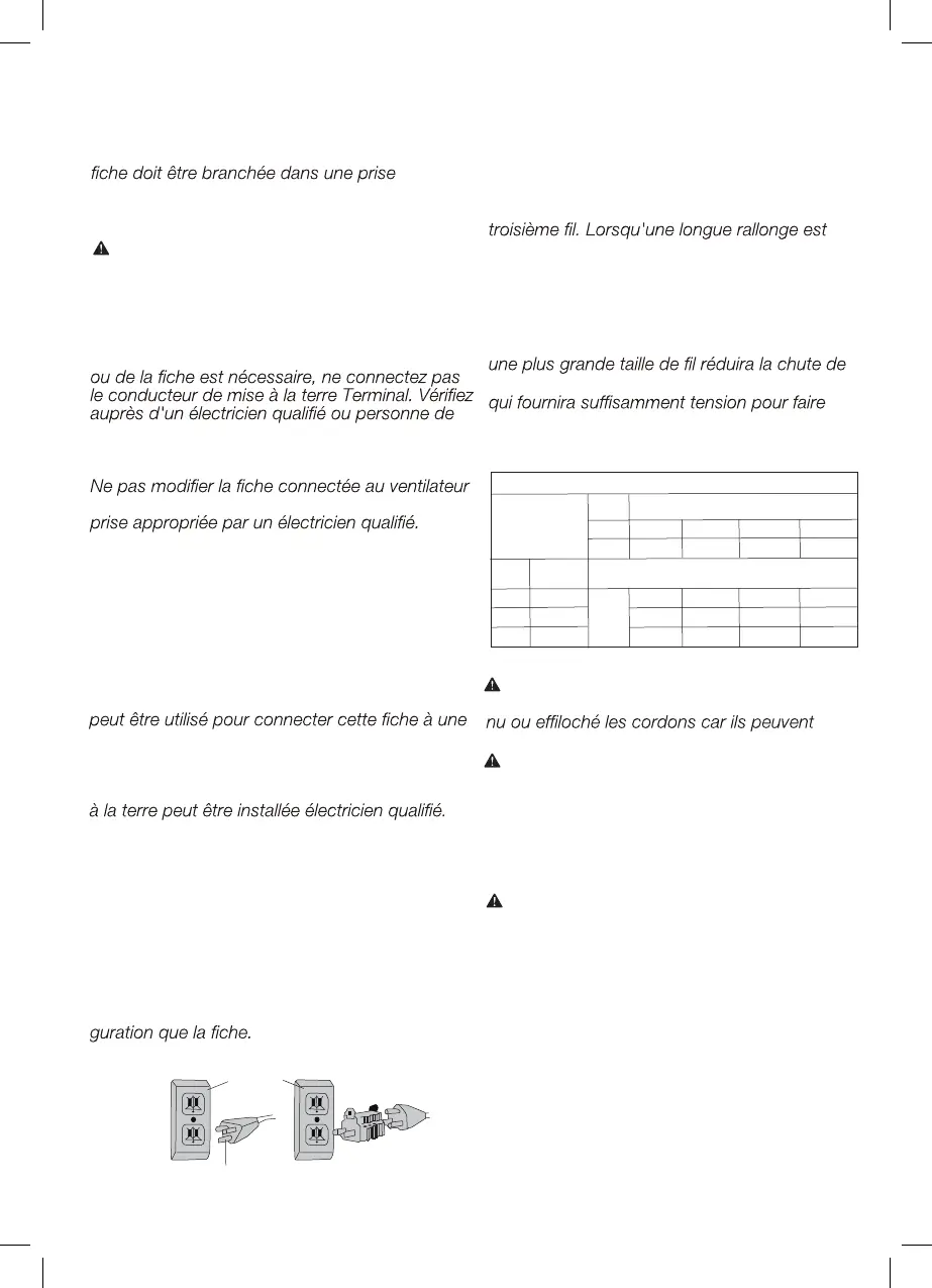 risque de choc. Le ventilateur doit être connecté