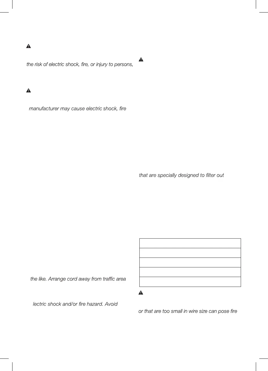 hazards when using an extension cord, be sure