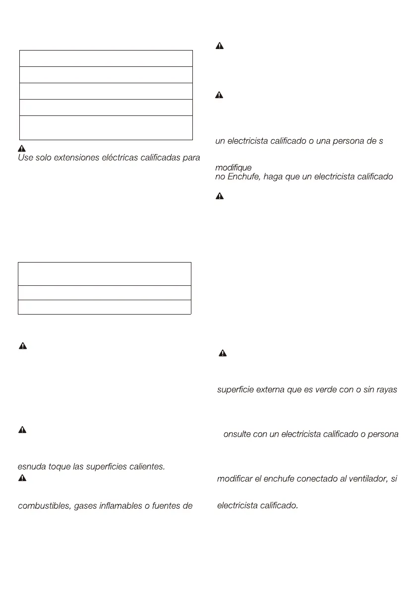 fuentes de agua. Nunca coloque el ventilador
