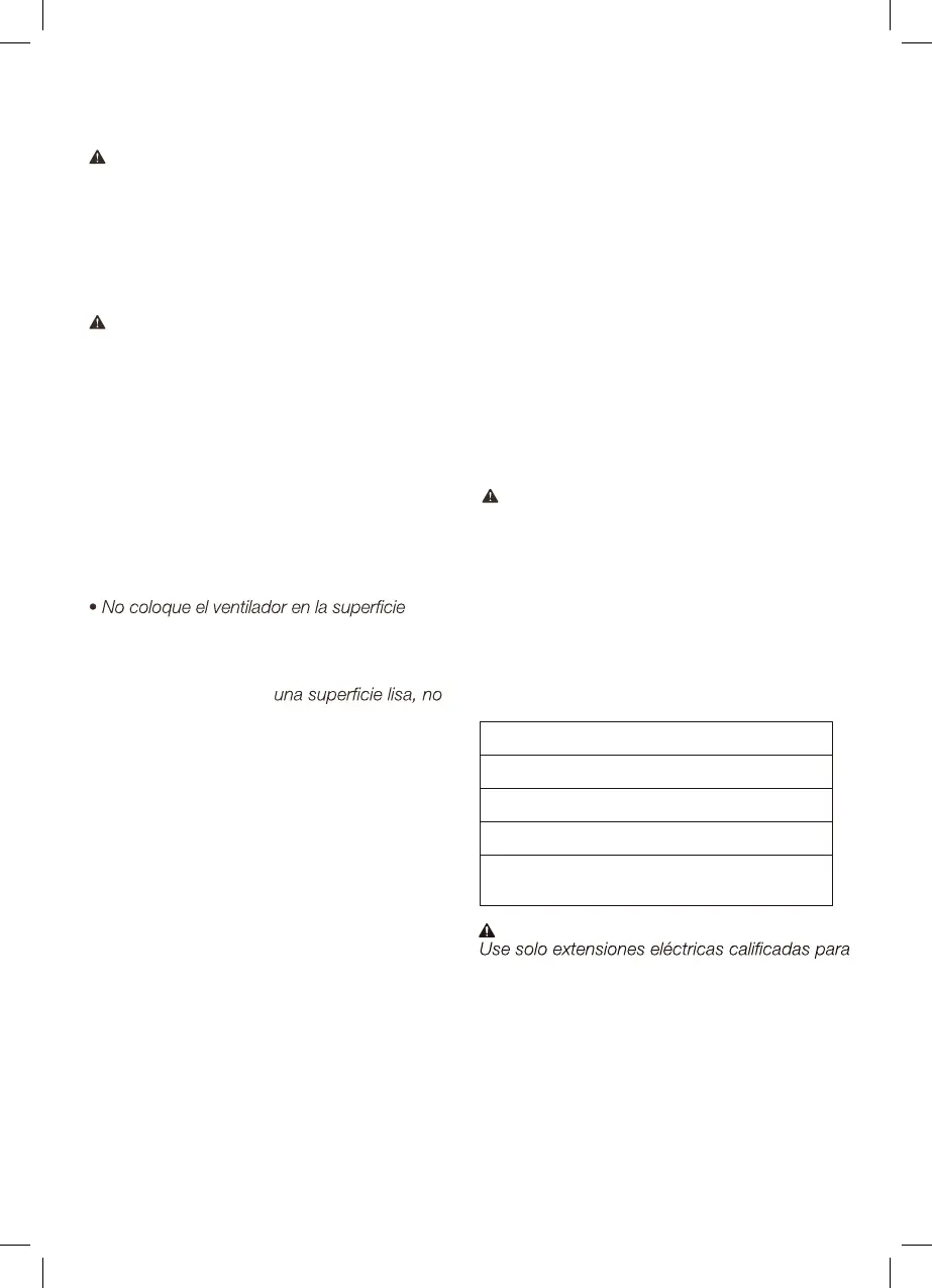 • No opere el ventilador con un cable de