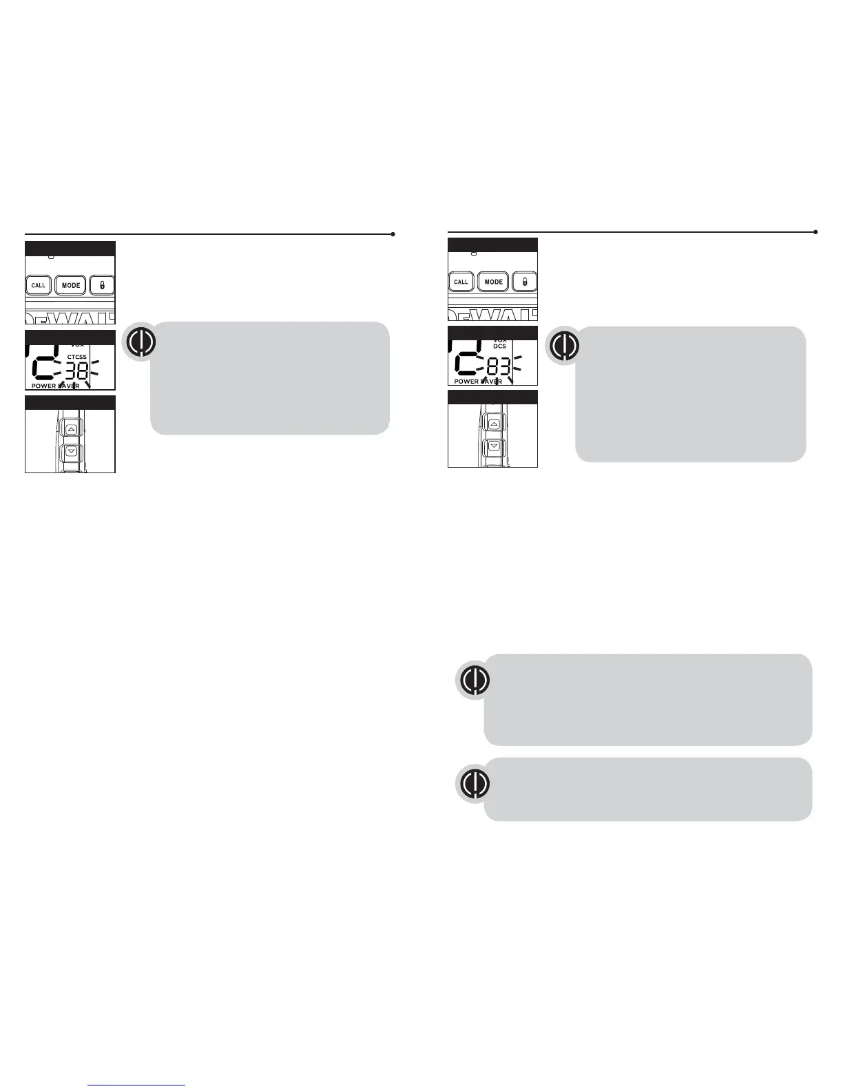 To switch from DCS to CTCSS, press the Up or