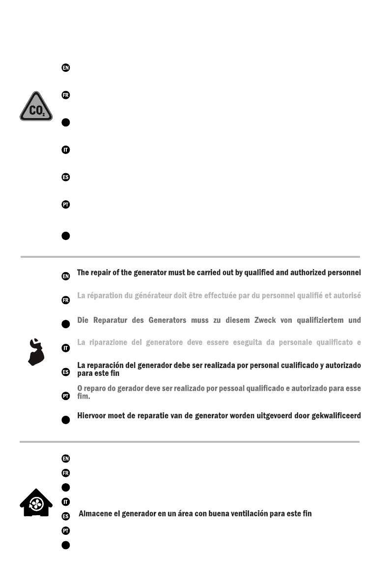 Conservare il generatore in un’area ben ventilata per questo scopo.