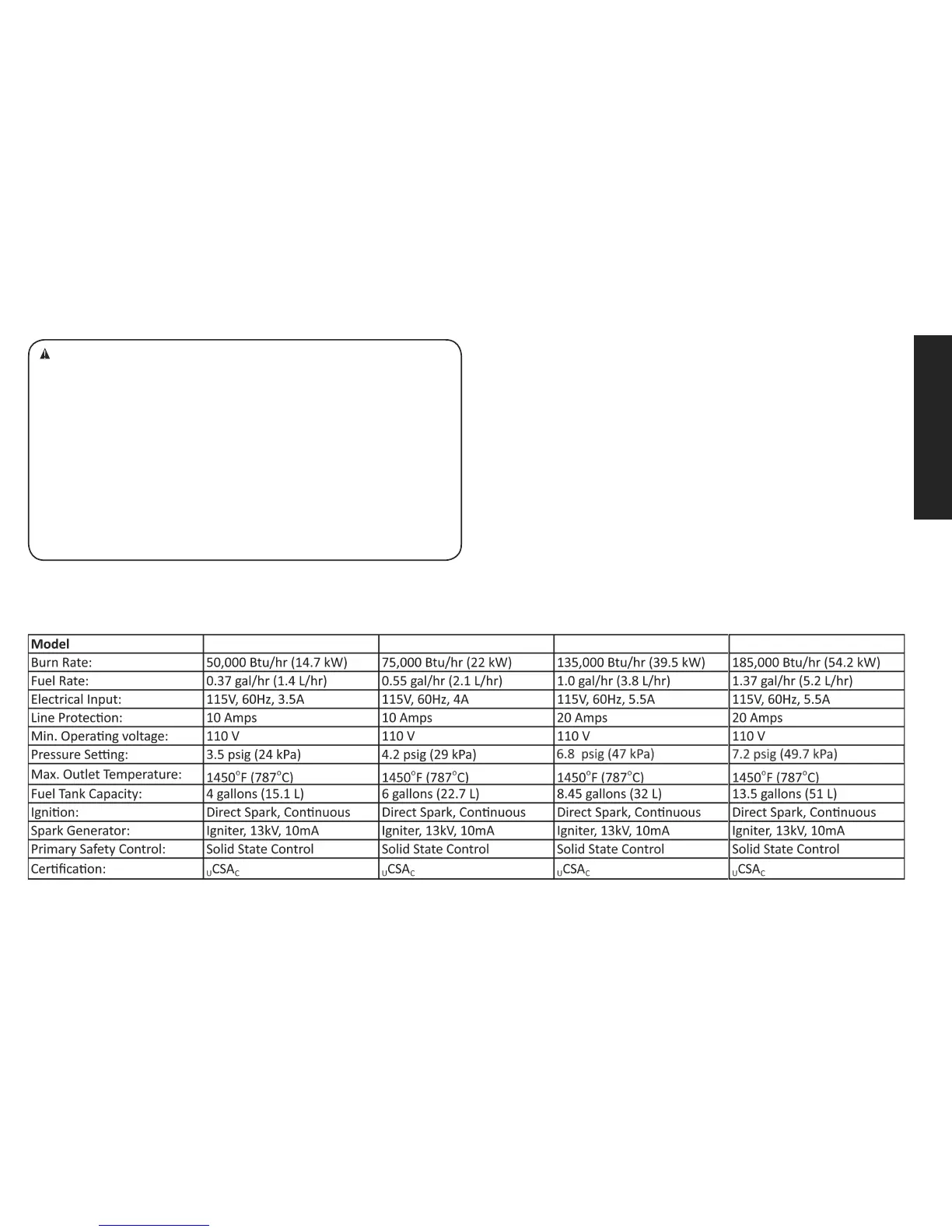 CAUTION: CSA certied for use with only No. 1-K kerosene fuel. Factory Tested: