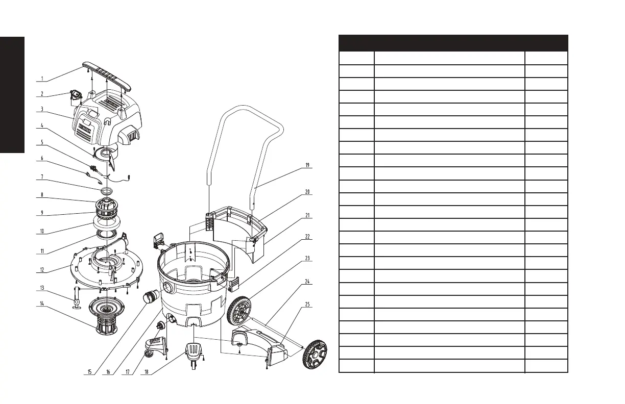 DeWalt DXV14P - Exploded View and Parts List; Vacuum Cleaner Components Diagram