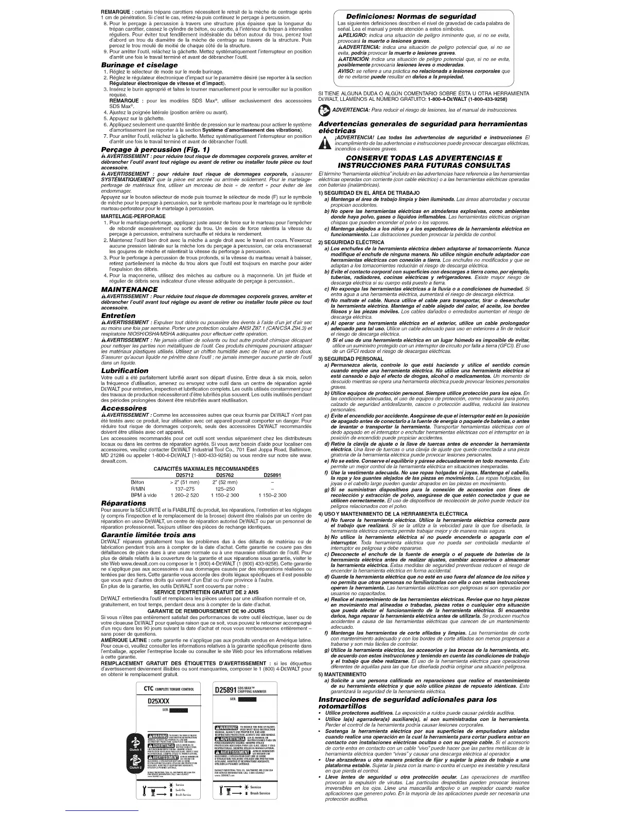 site Web www.dewalt.com ou composer le 1 (800) 4-DEWALT (1 (800) 433-9258). Cette garantie