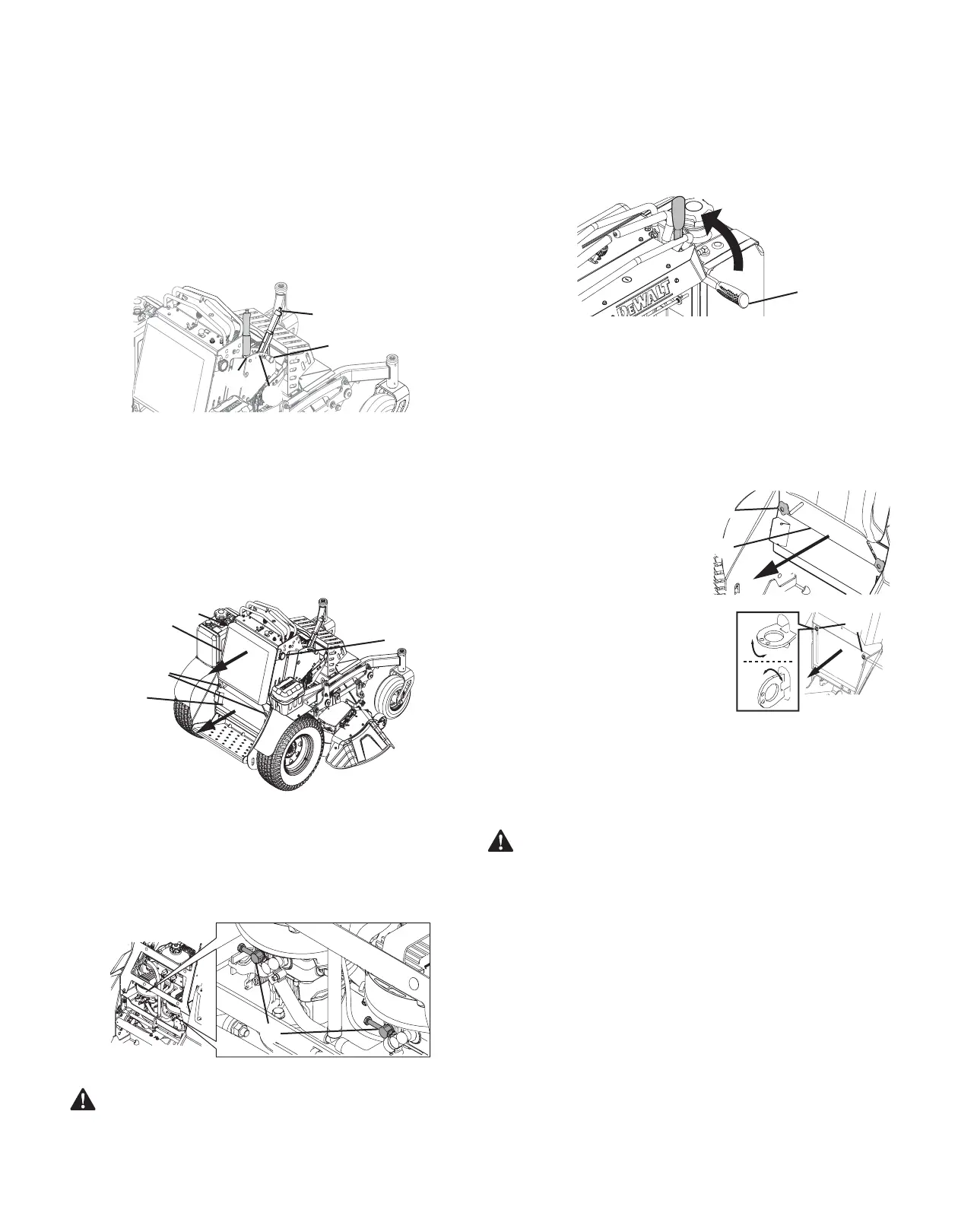4. Localice las transmisiones hidrostáticas y abra las dos válvulas de derivación (i) un