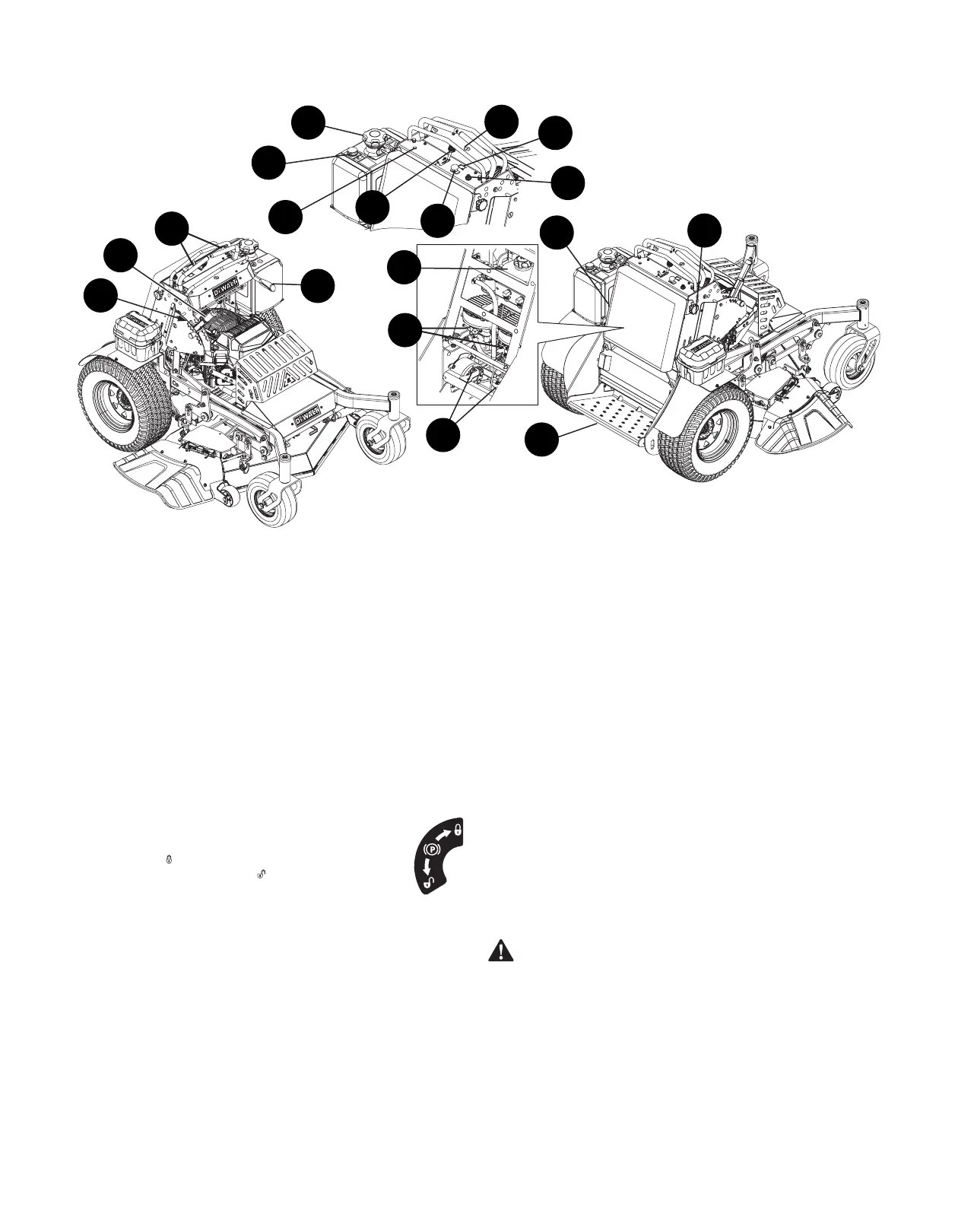 Consulte Revisión/Ajuste del freno de mano - plataformas de 36 pulgadas