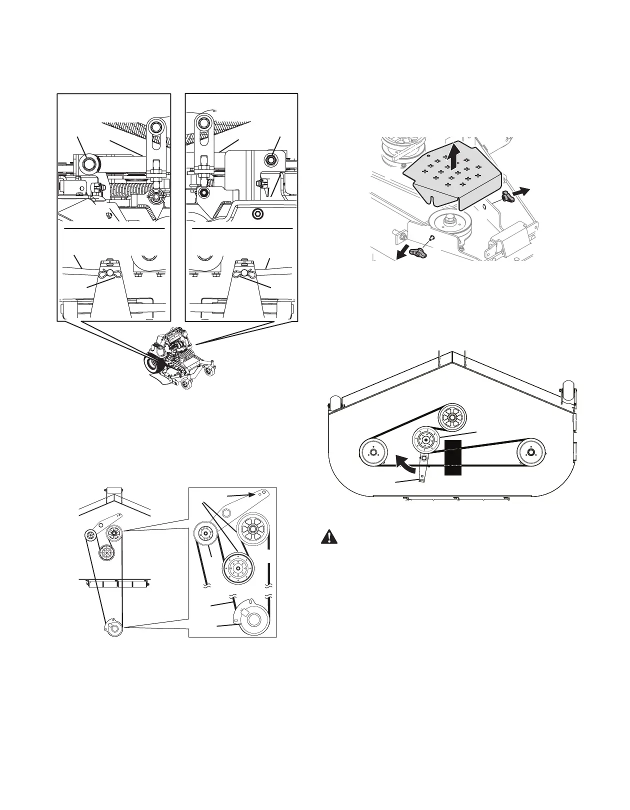 9. Invierta los PASOS 1 - 8 para instalar la correa de la PTO y la plataforma.