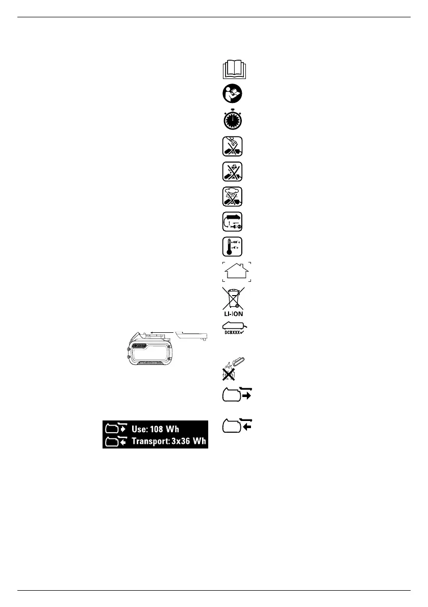 사용(운반 캡 미포함). 예: Wh 정격은 108 Wh를