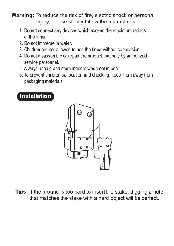 Align four tabs on stake with four holes on back of timer. Push