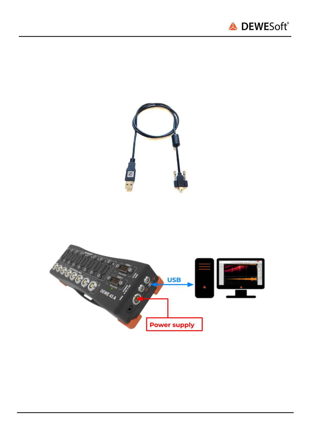 Then connect the USB cable to the rear-side of the DEWE-43A system (see connector named USB