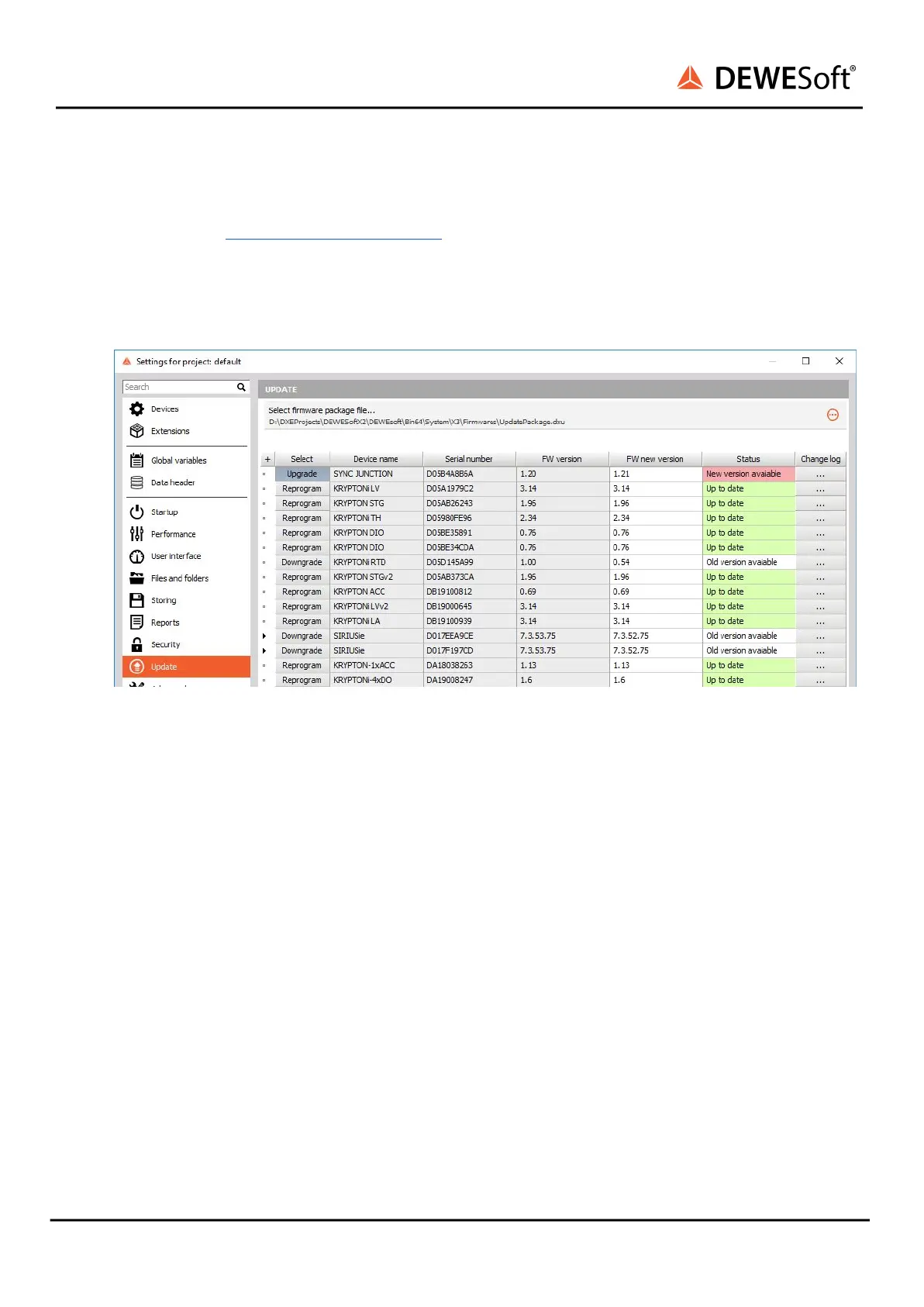● Download the Dewesoft upgrade package (.dxu file) from the Dewesoft downloads page under
