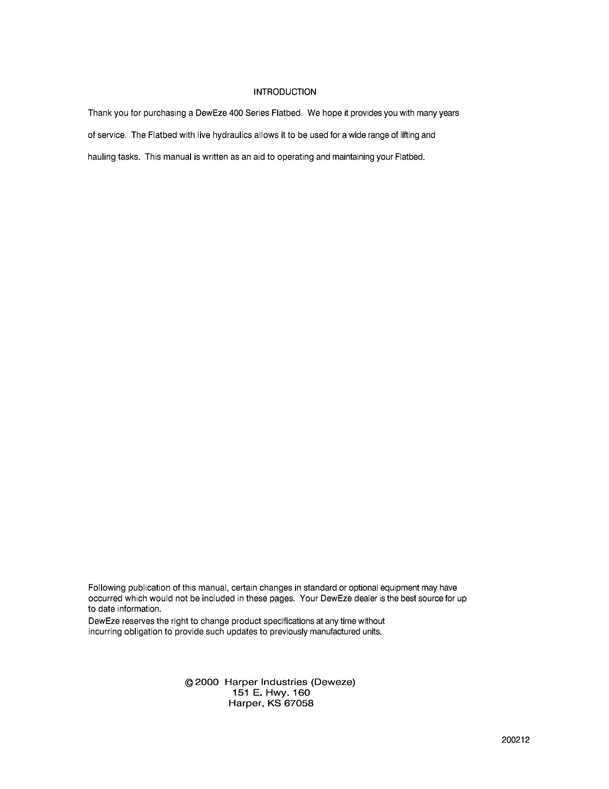 DEWEZE 400 Series - INTRODUCTION
