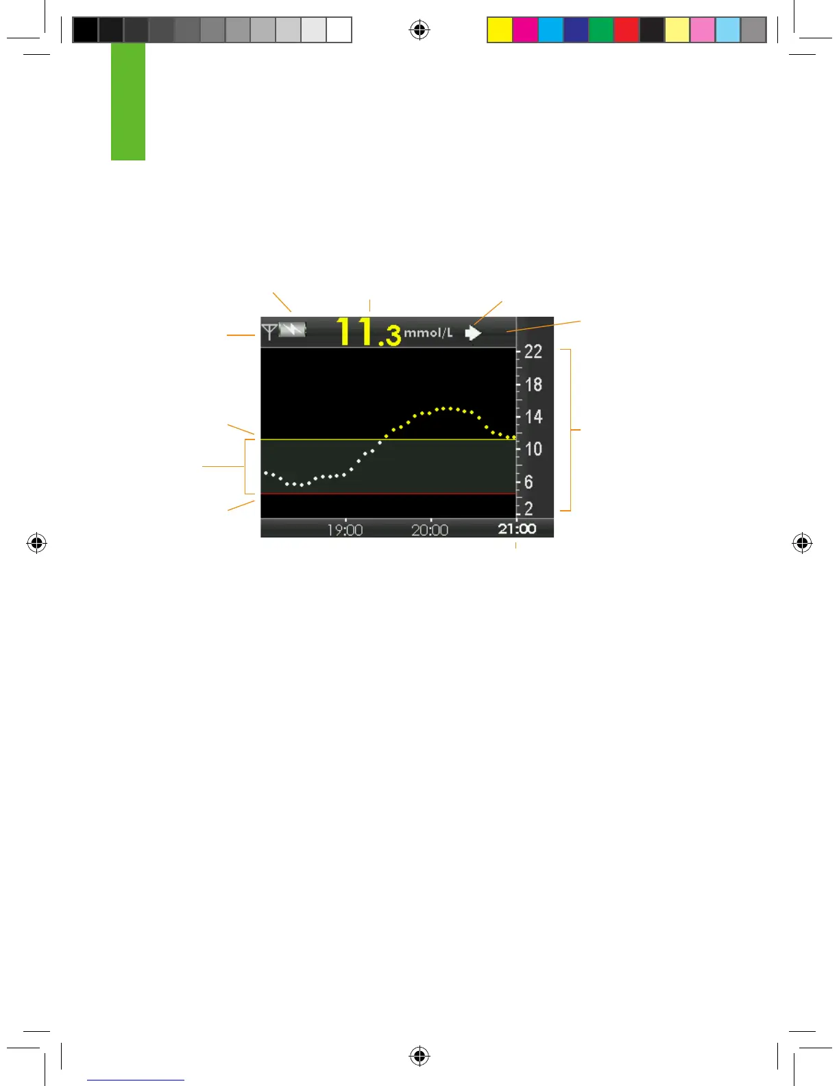 • Each “dot” on the trend graph is a sensor glucose reading reported every 5