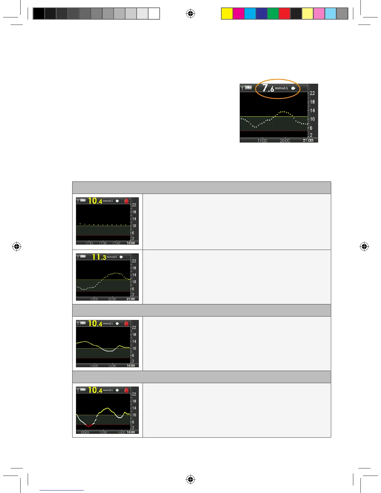 your current glucose reading and the last 12 hours of sensor